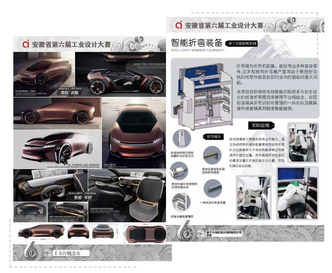 最終,來(lái)自奇瑞汽車(chē)的E-IUV概念車(chē)(概念設(shè)計(jì))與安徽聯(lián)盟模具工業(yè)有限公司的基于無(wú)線(xiàn)射頻識(shí)別的智能折彎裝備( 實(shí)物產(chǎn)品)榮獲本次大賽金獎(jiǎng),從設(shè)計(jì)理念、產(chǎn)品外形、先進(jìn)技術(shù)在產(chǎn)品中的應(yīng)用以及解決行業(yè)痛點(diǎn)等關(guān)鍵問(wèn)題上,以上作品在行業(yè)中均處于領(lǐng)先水平。同時(shí),來(lái)自順榮股份、三只松鼠、美的冰箱、中車(chē)龐巴迪(蕪湖)、安徽工程大學(xué)、安徽工業(yè)大學(xué)等企業(yè)、高校投稿作品也在本次大賽中取得了優(yōu)異的成績(jī)。