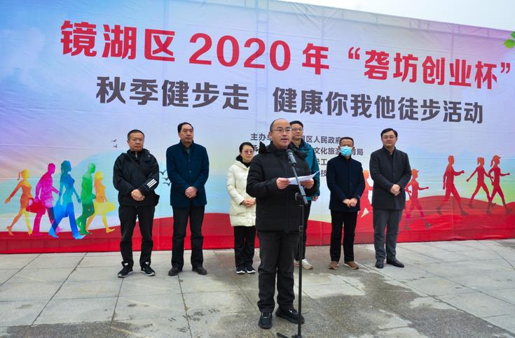 為落實(shí)鏡湖區(qū)2020年"健康鏡湖"全民健身活動計劃,提高全民參與科學(xué)健身的意識,12月3日,由鏡湖區(qū)人民政府主辦,區(qū)文化旅游體育局、區(qū)總工會承辦,大礱坊科技文化園協(xié)辦的2020年"礱坊創(chuàng)業(yè)杯"秋季健步走、健康你我他徒步活動在汀棠公園隆重舉行。區(qū)四大班子領(lǐng)導(dǎo)靳立剛、陳娟娟、王建明、朱光友、章建華,市體育局二級調(diào)研員江思紅等市、區(qū)領(lǐng)導(dǎo),園區(qū)負(fù)責(zé)人卞國琛等出席開幕式。